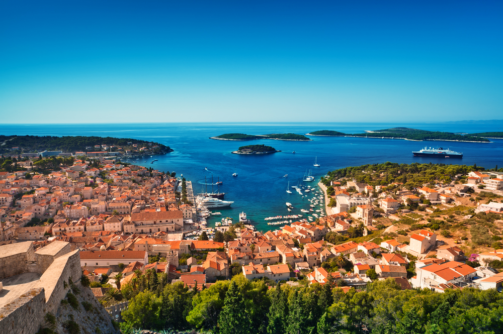 ヨットにて、フヴァルへ *「太陽の島」といわれるフヴァル島では、ぜひ丘の頂上まで登り、美しいフヴァルの街並みをご覧ください。レストランやカフェ、お土産もの屋さんが多くあり、フヴァル島名産のラベンダーを使ったグッズも手に入れることができます。 |