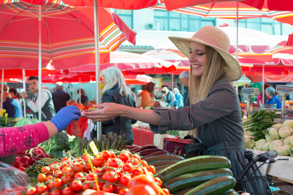 新鮮でお安い野菜や果物が並び、大賑わい!